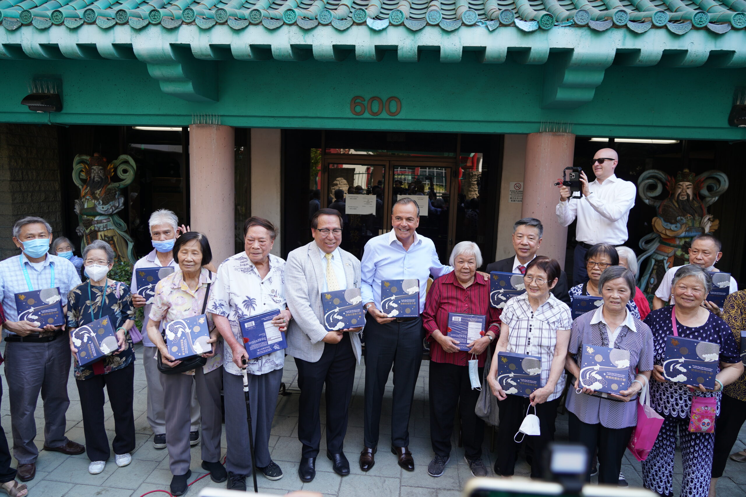 9月7日,洛杉矶市长候选人卡鲁索(Rick Caruso)拜访华埠国泰老人大厦的长者,并向他们赠送中...