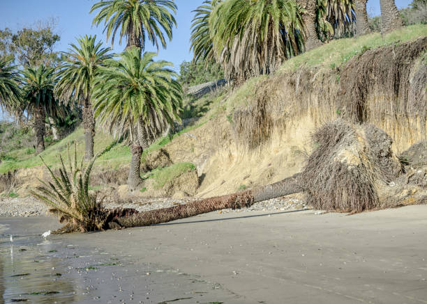 由于二月份的冬季风暴导致棕榈树倒塌和残骸清理工作,加利福尼亚州圣巴巴拉郡的加维奥塔州立公园(Gavi...
