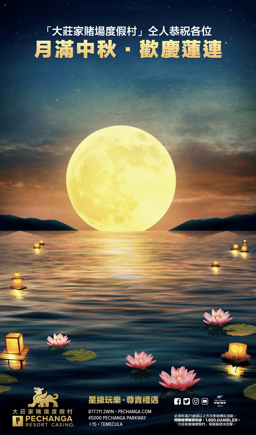 月滿中秋‧歡慶蓮連「大莊家賭場度假村」中秋現金獎賞幸運大抽獎,送出總值$100,000 現金及EAS...