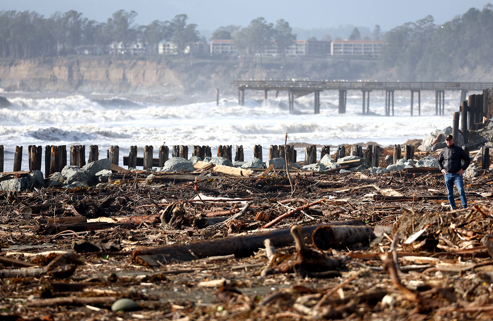 1月11日(周三),随着许多地区的暴雨减弱,受风暴蹂躏的加利福尼亚州紧急清理和修复被大范围破坏的区域...