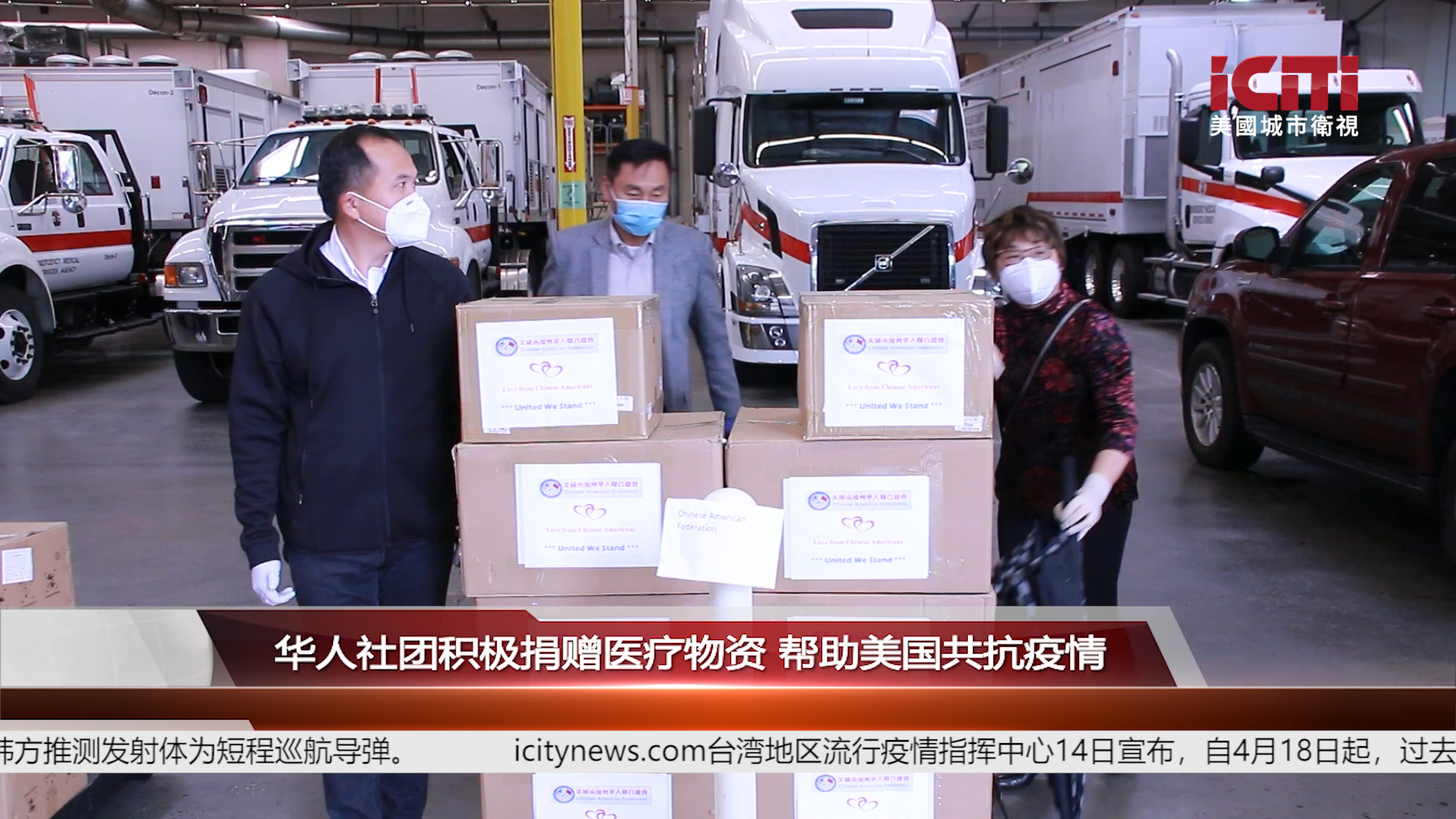 4月8日,美国南加州华人联合总会、全美浙江商会为洛杉矶郡捐赠医疗物资,郡长凯瑟琳巴格接受捐赠,并对...