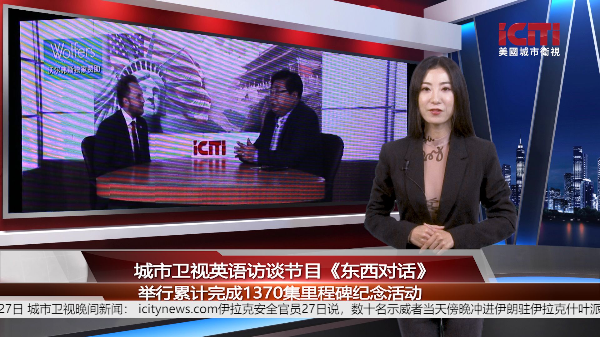 11月26日,美国鹰龙传媒旗下城市卫视英语访谈节目《东西对话》累计完成1370集里程碑纪念活动在鹰...
