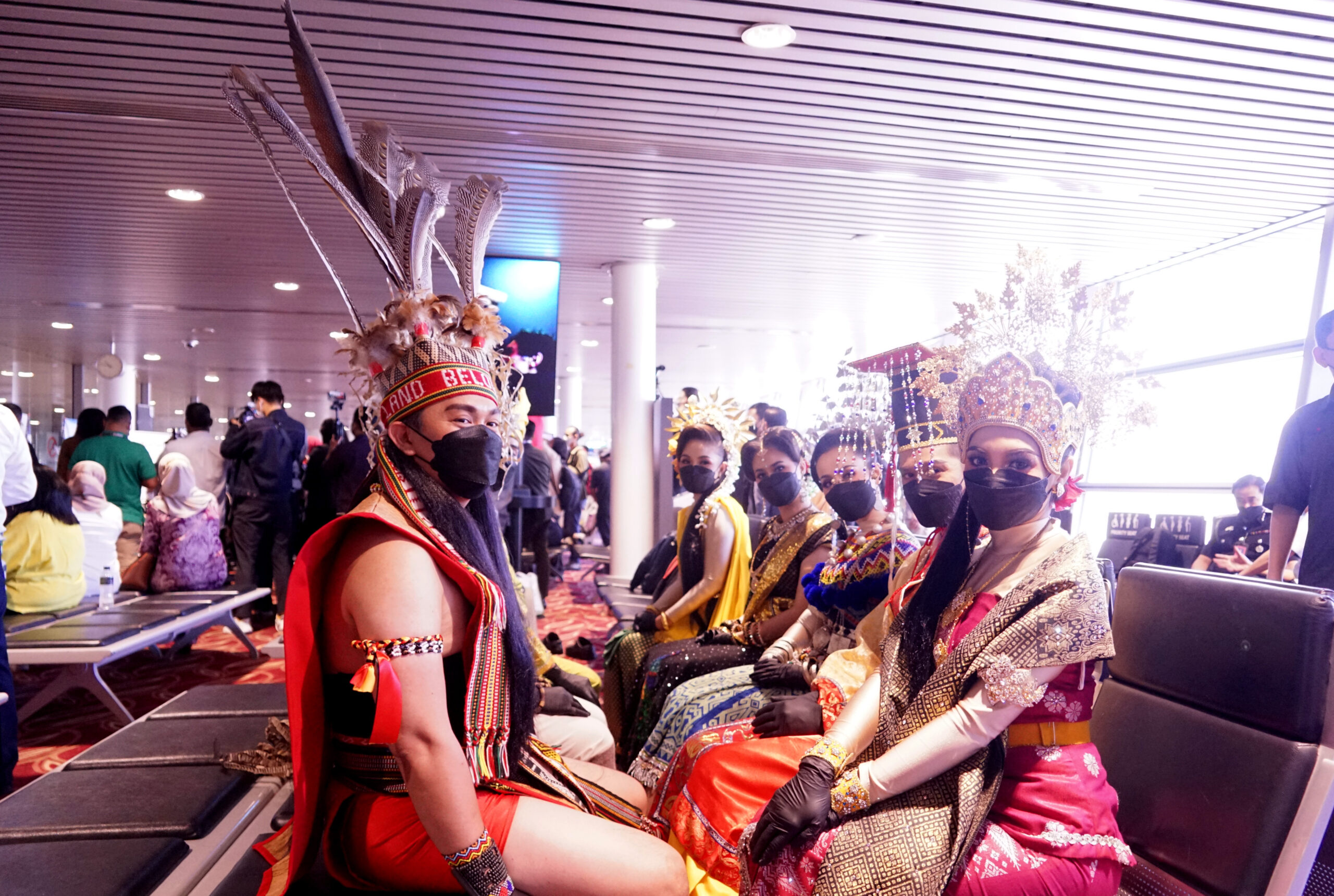 当地时间4月1日,马来西亚重开边界,允许完成疫苗接种者免隔离入境。图为马来西亚安排工作人员身着本国各...