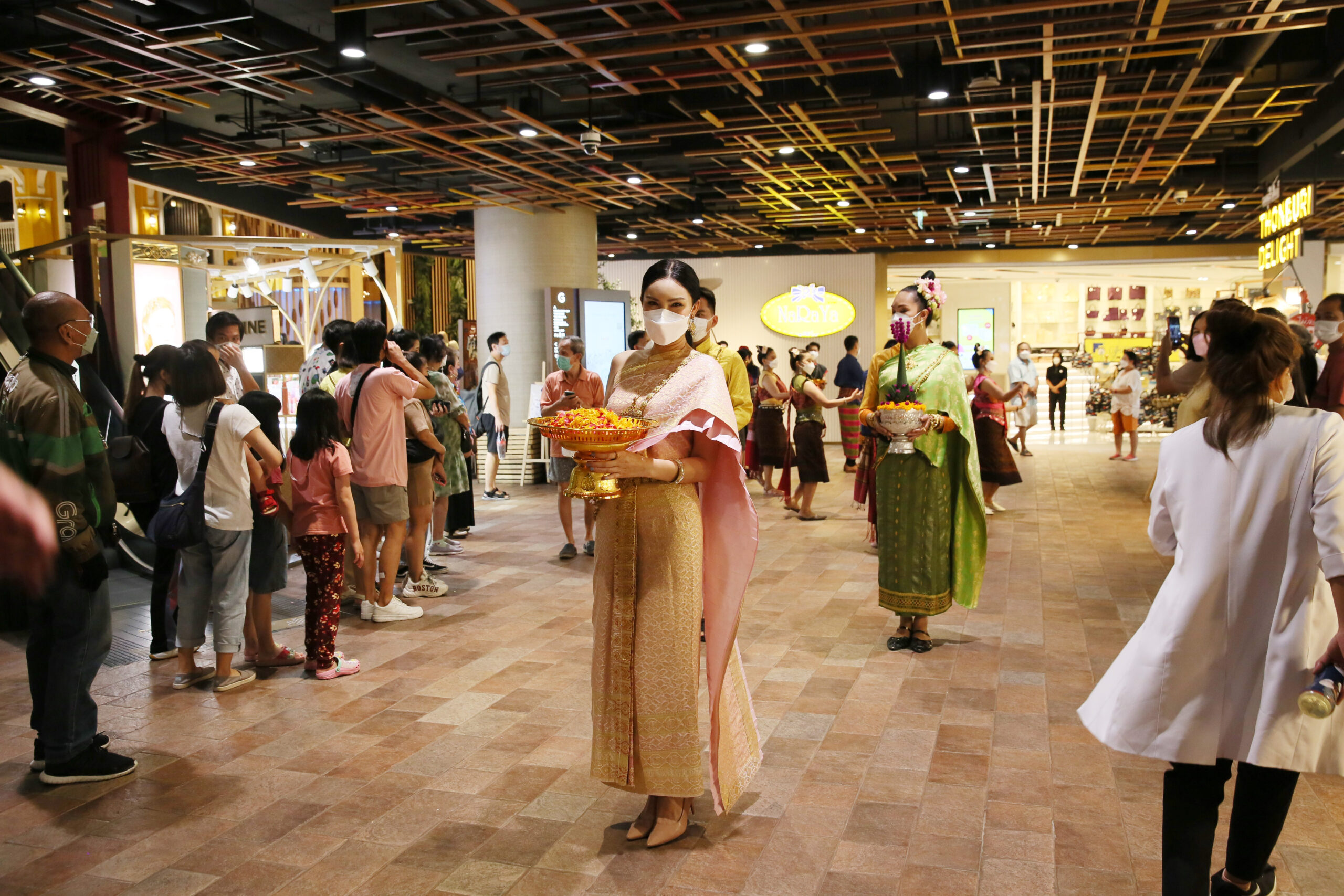 4月14日,泰国曼谷一知名商场内举行敬佛表演。时值泰历新年泼水节(宋干节)假期,曼谷街头不见“水花四...