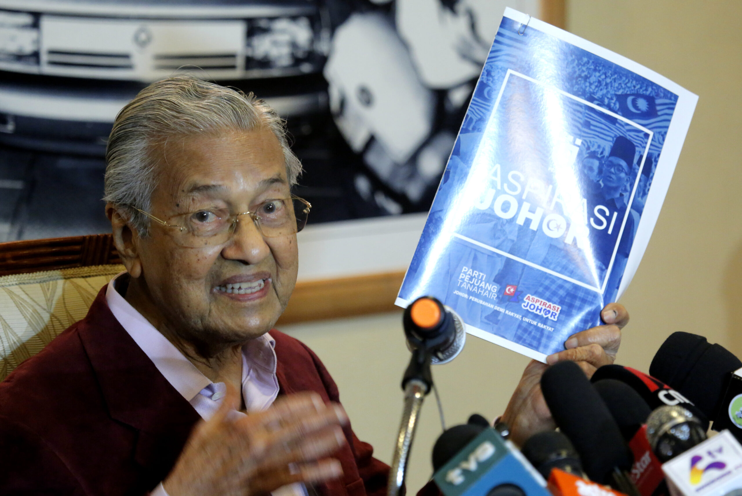 马来西亚前总理马哈蒂尔今年2月初出院后首度公开露面,在普特拉贾亚参与其创建的祖国斗士党柔佛州选造势活...