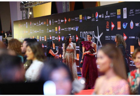 10月14日,在埃及胡尔加达,演员和嘉宾出席埃及古纳电影节红毯活动。 14日晚,第五届古纳电影节在埃...