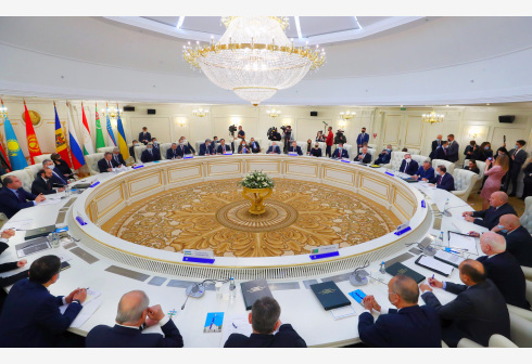 10月14日,参加独联体外长理事会会议的各国代表在白俄罗斯首都明斯克举行大范围会谈。 独立国家联合体...