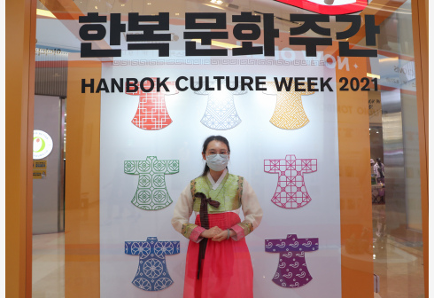 9月24日,一名游客在韩国京畿道河南市举行的韩服文化周上体验韩服。 韩国京畿道河南市于9月18日至2...