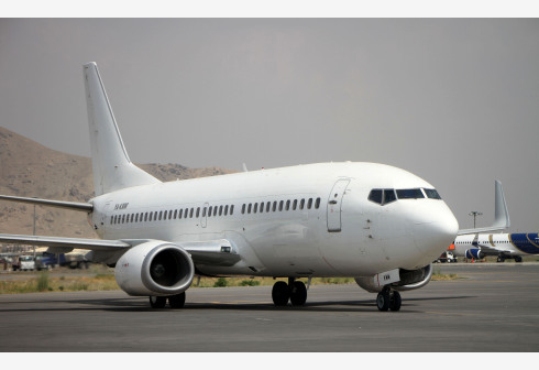 这是9月20日在阿富汗喀布尔国际机场拍摄的一架飞机。 阿富汗喀布尔国际机场的负责人20日表示,喀布尔...