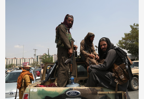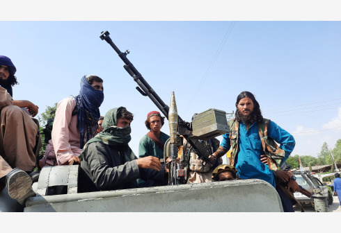 这是8月15日在阿富汗拉格曼省米特拉姆拍摄的塔利班武装人员。 自美国和北约军队5月撤离阿富汗以来,阿...