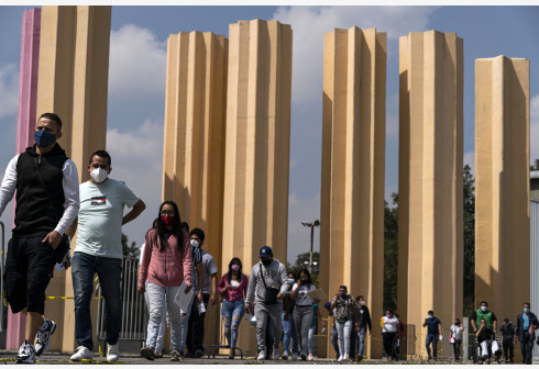8月11日,人们在墨西哥首都墨西哥城排队等待接种新冠疫苗。 墨西哥卫生部11日公布的疫情数据显示,该...