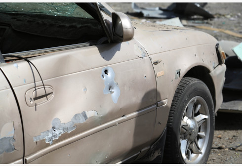 这是8月4日在阿富汗首都喀布尔汽车炸弹袭击现场拍摄的受损的汽车。 阿富汗警方3日说,阿代理国防部长比...