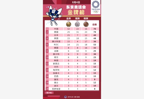 图表:8月4日东京奥运会金牌榜 未经允许不得转载:城市新闻网icitynews »...