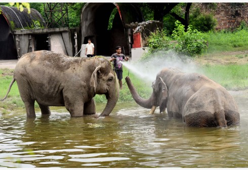这是8月1日在印度新德里动物园拍摄的大象。 因新冠疫情而关闭的印度新德里动物园当日重新对公众开放。 ...