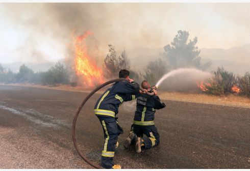 8月4日,在土耳其马纳夫加特,消防员参与灭火作业。 土耳其多地林火延烧数日,已致8人死亡。 未...