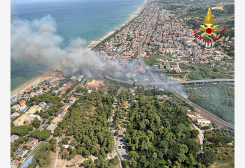8月1日,意大利佩斯卡拉发生林火的地点冒出浓烟。 意大利西西里岛和濒临亚得里亚海的中部城市佩斯卡拉等...