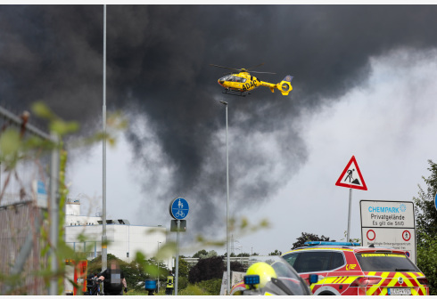 7月27日,一架直升机在德国西部城市莱沃库森发生爆炸的化工园区附近执行任务。 当日,莱沃库森的化工园...
