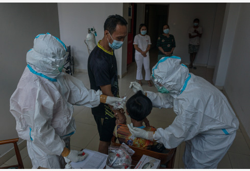 7月27日,一名男孩在印度尼西亚巴厘岛库塔接受新冠病毒检测。 据印度尼西亚国家抗灾署27日发布的疫情...