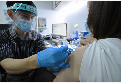 7月6日,新加坡一家私立诊所的医生为一名女子注射科兴疫苗。 新加坡卫生部选定24家私立诊所为民众提供...