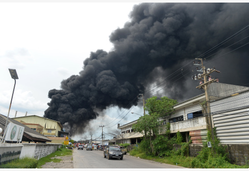 7月5日,泰国北榄府的爆炸现场冒出浓烟。 位于泰国首都曼谷东部北榄府的一家化学品工厂5日凌晨发生爆炸...