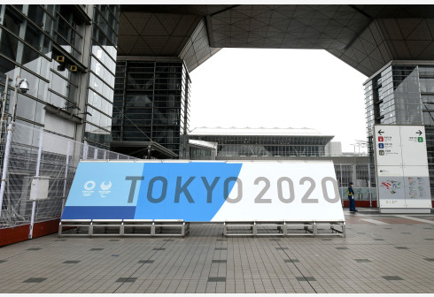 这是7月1日拍摄的奥运会主新闻中心入口。 当日,位于东京江东区国际展览中心的东京奥运会主新闻中心(M...