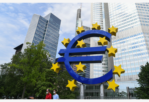 6月28日,人们从位于德国法兰克福的欧元雕塑前走过。 新冠疫情暴发以来,欧洲银行业在欧洲央行超宽松货...