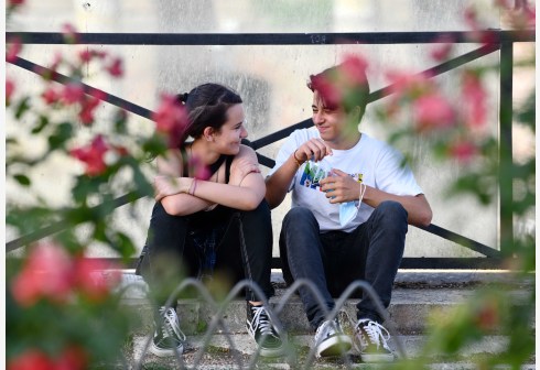 城市新闻网icitynews6月28日,在意大利罗马,两名年轻人坐在街边小憩。 意大利28日首次实现全国范围全部划定为新冠疫情低...