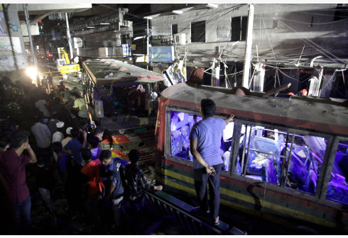 这是6月27日在孟加拉国首都达卡拍摄的建筑爆炸现场附近受损的车辆。 据孟加拉国媒体27日报道,达卡一...