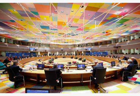 这是6月24日在比利时布鲁塞尔的欧盟总部拍摄的欧盟夏季峰会现场。 当日,为期两天的欧盟夏季峰会在比利...