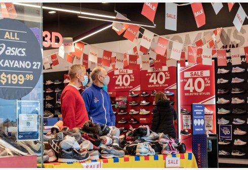 6月28日,戴口罩的顾客在澳大利亚堪培拉一家商场内购物。 为遏制新冠变异病毒德尔塔毒株进一步蔓延,澳...