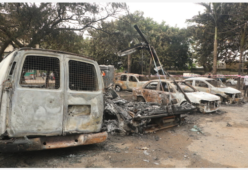 城市新闻网icitynews这是6月18日在尼日利亚拉各斯拍摄的在燃气运输车爆炸事故中受损的车辆。 尼日利亚紧急事务管理部门18...