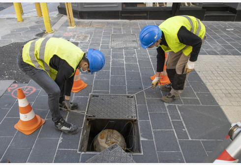 6月1日,工作人员在法国尼斯的下水管道中提取废水。 近期,法国南部城市尼斯的工作人员从街道的下水管道...