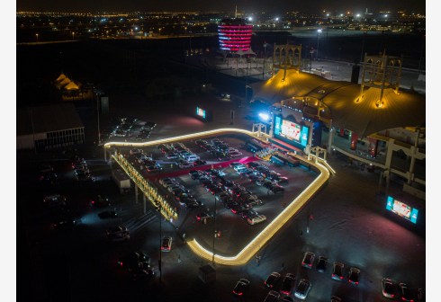 这是5月23日在巴林国际赛车场拍摄的巴林巴彦中学毕业典礼现场。 巴林国际赛车场23日举行了一场特殊的...