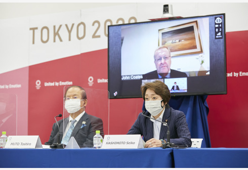 5月21日,东京奥组委主席桥本圣子(右)在新闻发布会上介绍情况。 当日,为期三天的国际奥委会东京奥运...
