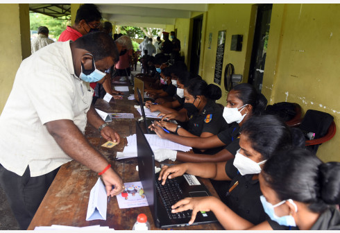 5月20日,在斯里兰卡科伦坡的一处疫苗接种中心,人们登记接种新冠疫苗。 斯里兰卡卫生部当日公布的新冠...