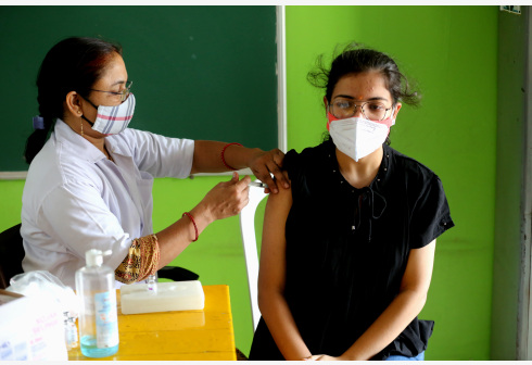 5月19日,一名女子在印度博帕尔接种新冠疫苗。 印度卫生部19日公布的数据显示,过去24小时该国新增...