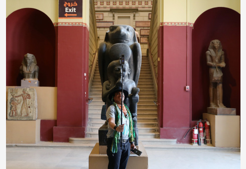 5月18日,游客在埃及开罗的埃及博物馆参观。 埃及博物馆位于埃及首都开罗市中心解放广场,珍藏着自古埃...