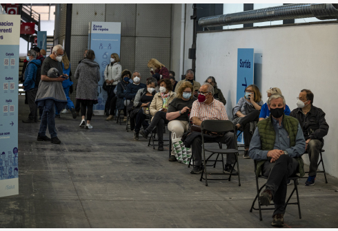 4月26日,人们在西班牙巴塞罗那会展中心接种新冠疫苗后留观。 西班牙加泰罗尼亚自治区26日在首府巴塞...