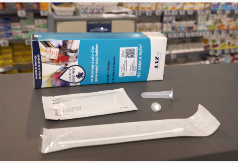 这是4月14日在法国南部城市尼斯的一家药店拍摄的新冠病毒自检盒。 12日起,法国药房开始出售新冠病毒...
