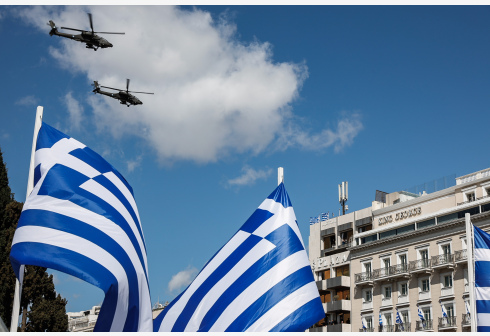 3月25日,直升机在希腊雅典参加阅兵仪式。 1821年3月25日,希腊反对奥斯曼帝国统治的独立战争拉...