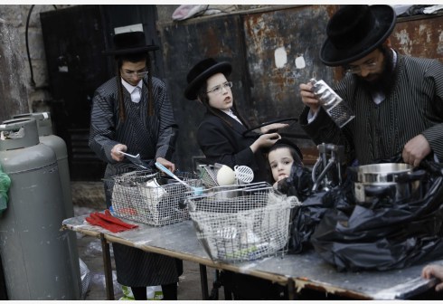 3月24日,正统犹太教徒在耶路撒冷用开水浸泡餐具以去除上面的酵母。 逾越节是犹太人的重要节日,纪念古...
