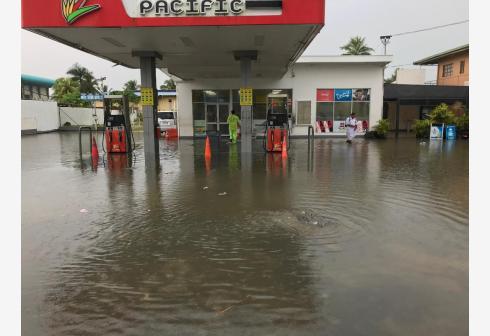 3月25日,斐济首都苏瓦的一处加油站浸泡在洪水中。 斐济首都苏瓦25日遭遇强降雨天气,导致多地发生洪...