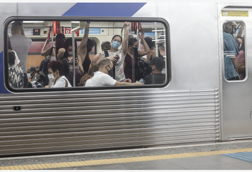 3月22日,人们戴口罩在巴西圣保罗乘坐地铁。 巴西卫生部22日19时10分公布的最新数据显示,24小...