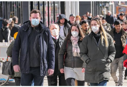 这是3月22日在德国首都柏林拍摄的佩戴口罩的行人。 德国联邦与地方政府22日就是否延长新冠防疫举措等...
