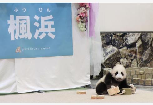 这是3月18日在日本和歌山“冒险世界”拍摄的大熊猫宝宝“枫浜”。 位于日本和歌山县白浜町的休闲乐园“...