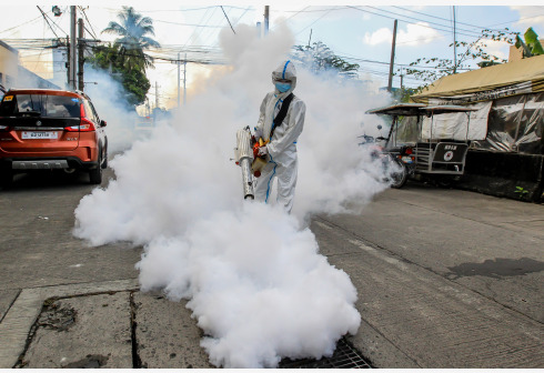 3月17日,工作人员在菲律宾马尼拉街头进行消杀作业。 近期,菲律宾疫情呈现快速反弹趋势。菲律宾卫生部...