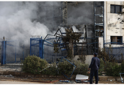 3月11日,在埃及盖卢比尤省,失火的制衣厂内冒出浓烟。 埃及首都开罗以北的盖卢比尤省一家制衣厂11日...