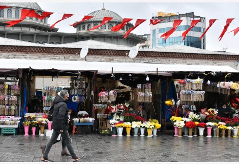 2月25日,在土耳其伊斯坦布尔的塔克西姆广场,行人从商铺前走过。 土耳其国家统计局日前公布的数据显示...