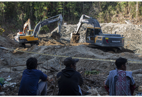 2月25日,在印度尼西亚中苏拉威西省金矿垮塌事故现场,挖掘机参与救援。 印度尼西亚国家抗灾署25日说...