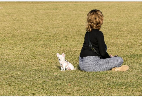 2月24日,一名女子和她的宠物狗坐在德国首都柏林的一处草地上。 德国疾控机构罗伯特·科赫研究所24日...
